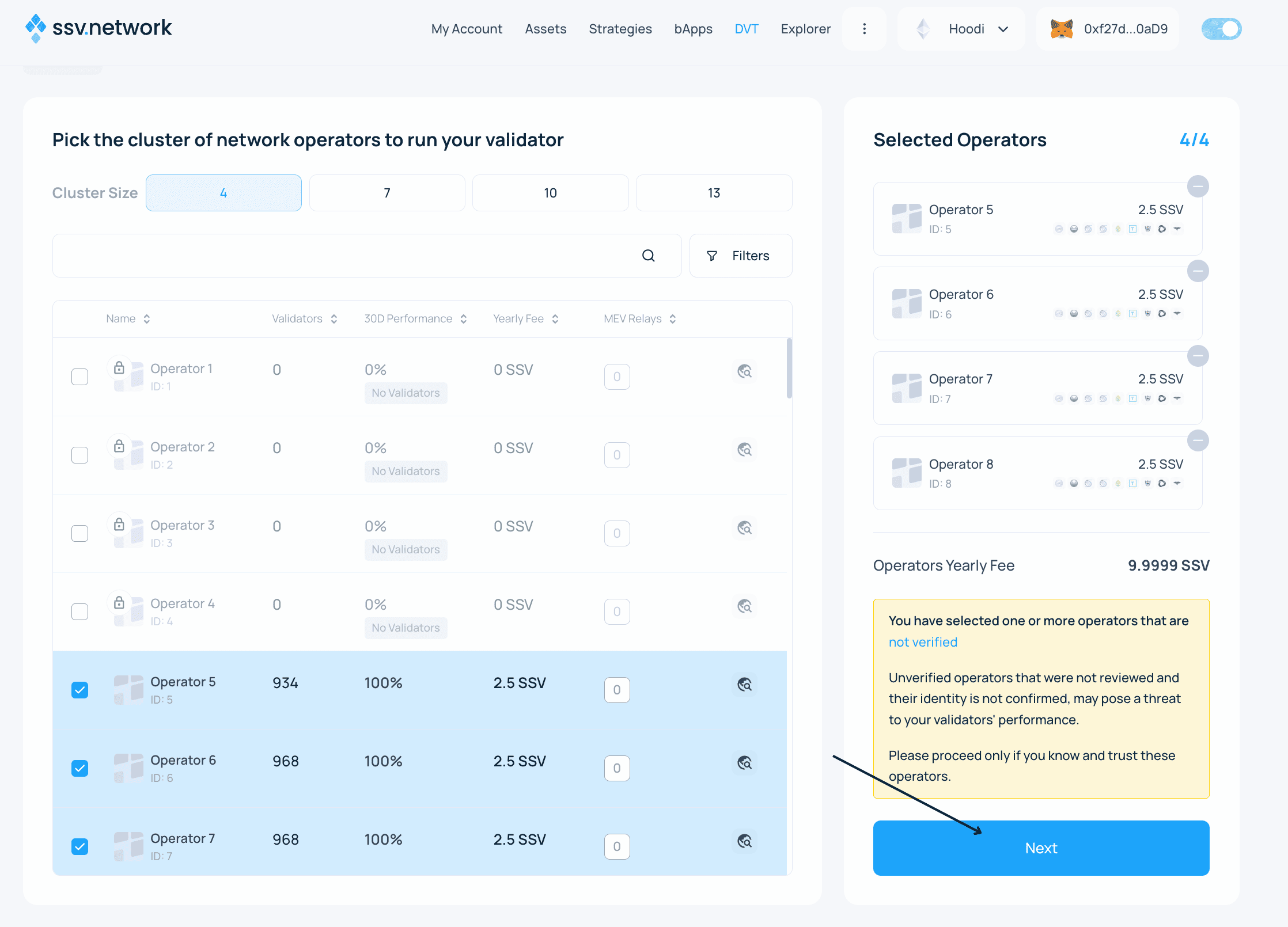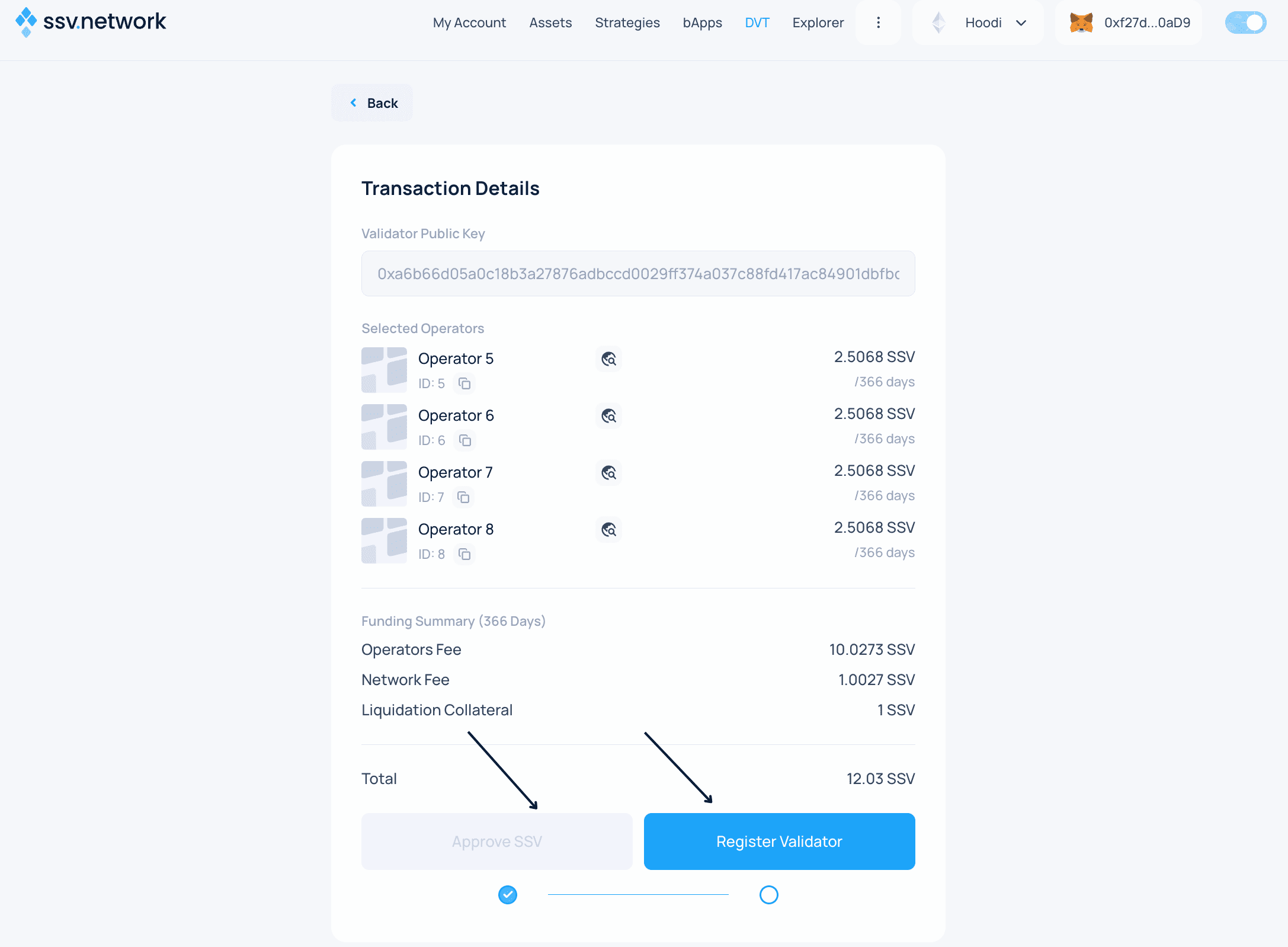 - Congratulations! 🎉 Your validator is now registered on the SSV network and being managed by your selected operators.